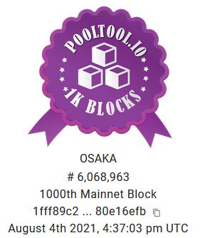 Osaka-Poolは1000個めのブロック生成を達成しました。