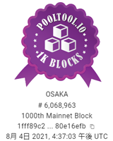皆様のおかげで1000Blocks達成です!エポックによってはBadLuckもありましたが、ようやく達成できました。